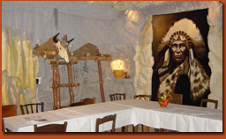 Priamo v hoteli sa nachádza jedáleň pre stravovanie ubytovaných hostí, reštaurácia so záhradným posedením vonku a bar s vnútorným kozubom. Súčasťou areálu je ,, slovenská reštaurácia ,, s indiánskym salónikom, ktorej atmosféra pripomína typickú slovenskú dedinu. Labužníci si môžu prísť na svoje výberom zo širokej ponuky hotových a minútkových jedál / od múčnych tatarčených pirohov cez lokše s mačankou až k rybacím a iným špecialitám, cestovinovým a zeleninovým pokrmom / K dobrej nálade prispieva cimbalová muzika, pri ktorej si hostia môžu posedieť každý víkend. V priestoroch reštaurácie sa môžu na objednávku usporiadať oslavy, bankety, svadby, stretnutia ...Ponuka predaja ovčieho syra, aj údeného, bryndze, žinčice a domáce tatrčené pirohy, bryndzové halušky a mačanka s lokšami!!!!!!